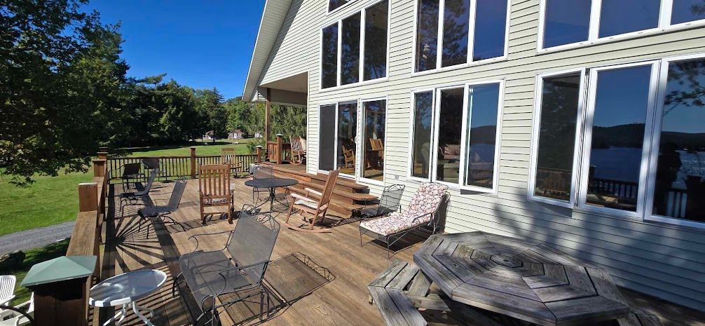 Your Adirondack getaway awaits in Eagle Bay at this charming chalet. Nestled in a peaceful lakefront setting, this chalet offers a picturesque view from the deck overlooking 4th lake. With 5 bedrooms consisting of 1 king-size bed, and 6 fulls, you'll have plenty of room to relax and unwind. Three full bathrooms are equipped with all the essentials, including a hair dryer. This is the perfect setting for large family gatherings, as the great room combined with a large kitchen will comfortably accommodate 14+ people. As guests of Eagle Bay Village, you will have access to the sandy beach with a designated swimming area, as well as the family friendly playground equipment. Guests will also have freedom to explore the 11 acre property. Boat slips are available to rent during your stay.